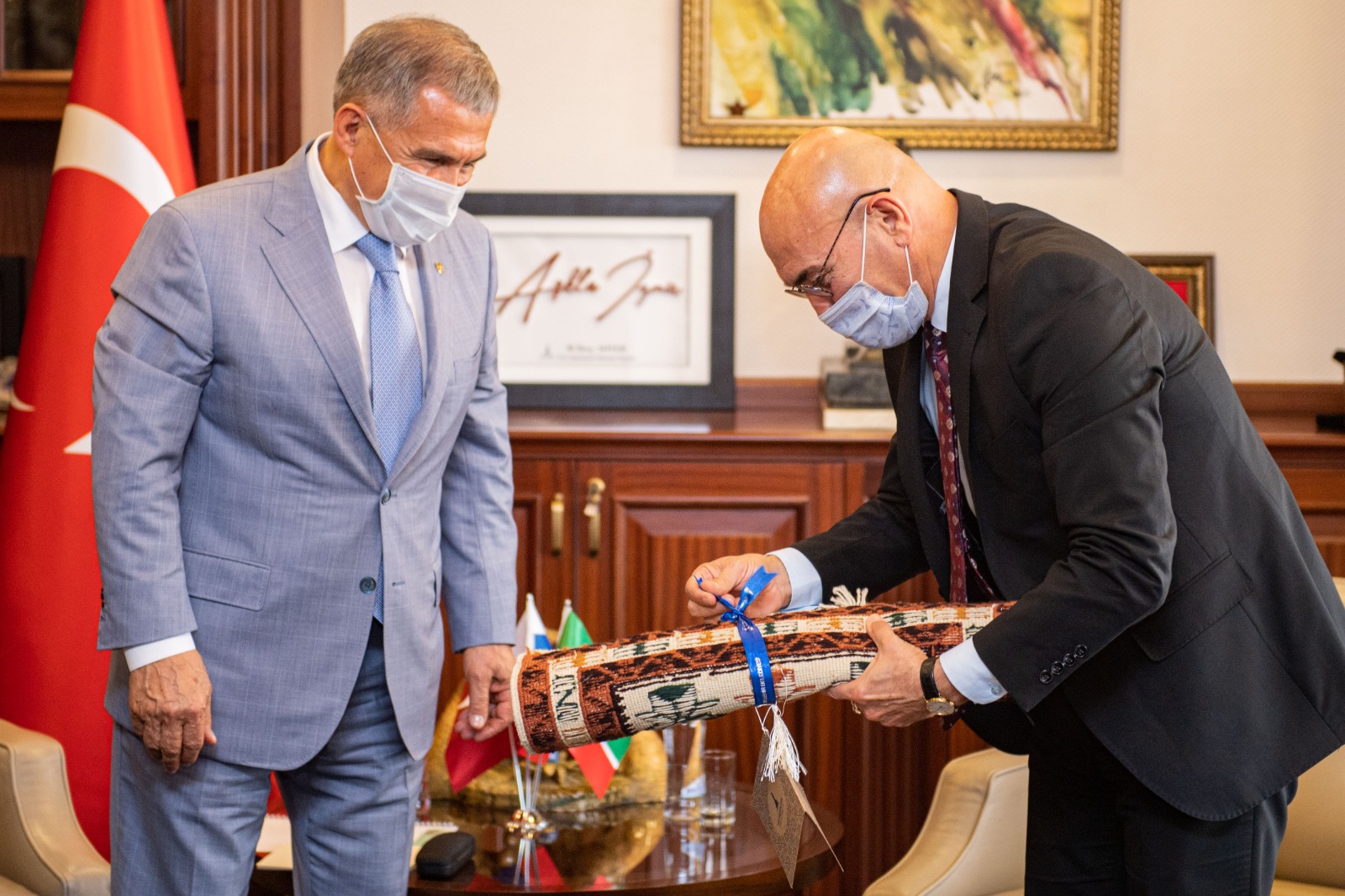 İzmir Büyükşehir Belediye Başkanı Tunç Soyer, tataristan Cumhurbaşkanı rüstem minnihanov ve beraberindeki heyeti makamında ağırladı. Toplantıda konuşan Başkan Soyer, Tataristan ve İzmir ilişkilerinin geliştirilmesi ve birlikte çalışmak için büyük heyecan duyduğunu söyledi. İzmir’e üçüncü kez geldiğini ve İzmir’e geldiğinde enerji topladığını vurgulayan Rüstem Minnihanov ise Başkan Tunç Soyer’i tanıdıktan sonra İzmir’de topladığı enerjinin iki katına çıktığını belirtti. İzmir’in gelişmesi için yaptığı çalışmalardan ötürü Başkan Soyer’i tebrik eden Minnihanov, Türkiye’nin Tataristan’a yatırım yapan en önemli ülkelerinden biri olduğunu, en yakın zamanda İzmir iş çevrelerini Tataristan’a beklediğini söyledi. 2019 yılının Aralık ayında Kazan’da görüşen Soyer ve Minnihanov eğitimden turizme kadar bir dizi konuda işbirliği kararı almıştı.