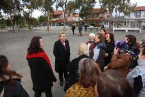 Urla Belediye Başkanı Sibel Uyar, Torasan Mahallesi’ndeki semt merkezinde kurs ve eğitimlere katılan kadınlarla buluştu, yaptıkları ürünleri inceledi. Kadın ve Aile Hizmetleri Müdürlüğü’nde Torasan Mahallesi’ne kurulan Semt Merkezi’nde Ekim ayından bu yana bölgedeki kadınlar kadın sağlığı eğitimi, değerler eğitimi başta olmak üzere bazı konularda kurslara katıldı. Torasan Mahallesi sakinleri daha sonra haftada iki gün olmak üzere el sanatları ve takı kurslarına katılarak, aile bütçelerine katkı sağlayacak ürünleri tasarlayıp, ürettiler.