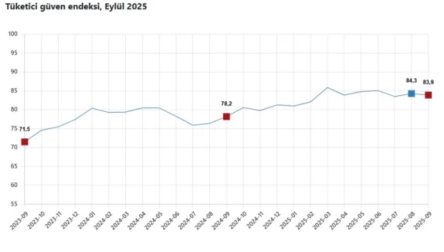 Türkiye İstatistik Kurumu ve Türkiye Cumhuriyet Merkez Bankası işbirliği ile gerçekleştirilen tüketici eğilim anketi sonuçlarından, Ağustos ayında 84,3 olarak hesaplanan tüketici güven endeksi Eylül ayında yüzde 0,4 oranında bir düşüş yaşayarak 83,9 oldu.