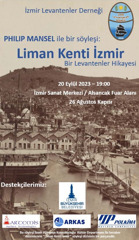 İzmir Büyükşehir Belediyesi ve İzmir Levantenler Derneği, ünlü İngiliz tarihçi Philip Mansel’i İzmirlilerle buluşturacak “Liman Kenti İzmir-Bir Levantenler Hikâyesi" söyleşisi düzenliyor. 20 Eylül Çarşamba günü saat 19.00'da İzmir Sanat Merkezi’nde tercüme desteğiyle yapılacak etkinlik, İzmir Almanya Konsolosluğu Kültür Ataşeliğinin Liman Kenti İzmir söyleşilerinin bir bölümü olarak izleyicilerle buluşuyor. Levant, Konstantiniyye, Sultanların İhtişamı ve Halep adlı eserleri Türkçe olarak yayımlanmış olan Philip Mansel, 8 bin 500 yıllık geçmişe sahip tarihi liman kenti İzmir’i “Bir Levantenler Hikâyesi” bağlamında ele alacak.Philip Mansel Kimdir?