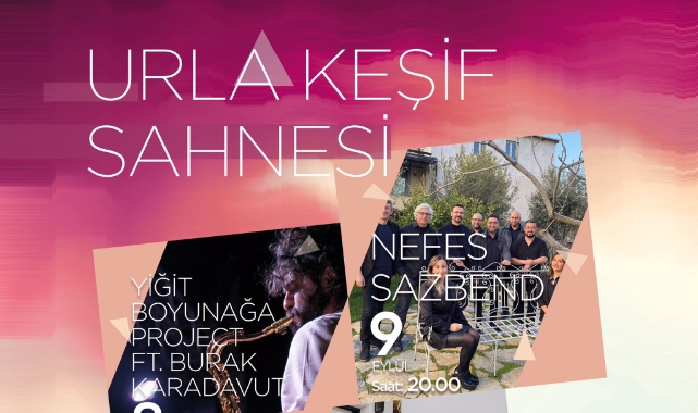 İzmir Büyükşehir Belediyesi’nin düzenlediği "Urla Keşif Konserleri”, Urla'nın eşsiz atmosferini müziğin büyüsüyle birleştirecek. 8-9-15-16 Eylül tarihlerinde ücretsiz olarak Urladam’da yapılacak konserlerde altı farklı performans müzikseverlere unutulmaz anlar yaşatacak. Bu akşam 20.00’de Yiğit Boyunağa Project ft. Burak Karadavut ile başlayacak konser dizisi 9 Eylül saat 20.00’de Nefes Sazbend, 9 Eylül 21.30’da Ali Can Öztürk Quartet, 15 Eylül 19.30’da Zeytin Gölgesi ve 21.00’de Çalgiya İzmir, 16 Eylül 20.00’de Serhan Erkol “Space Walk” Live Set ile sürecek.