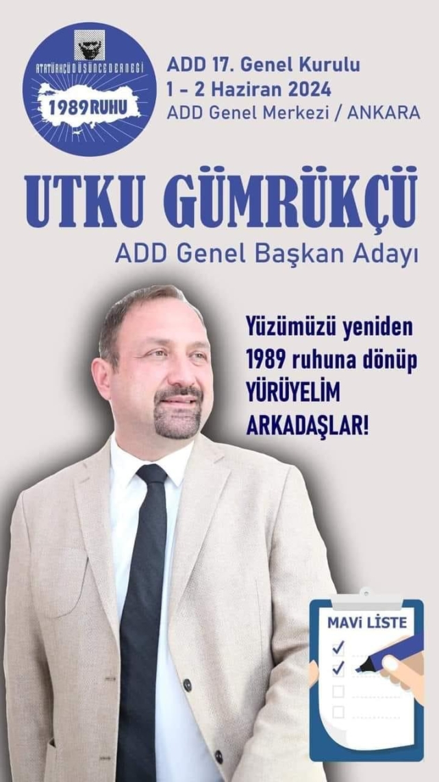 EGE’YE BAKIŞ – Eski Çiğli Belediye Başkanı Utku Gümrükçü, ADD Genel Başkanlığı’na mavi listeden aday oldu.