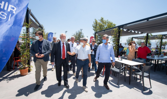 yasemin kafe ziyaretinin ardından Başkan Tunç Soyer, Bayraklı sahilindeki İmbat Kafe'de incelemelerde bulundu. Hasan İkat Başkan Soyer’e yenilenen kafe ile ilgili bilgi verdi.