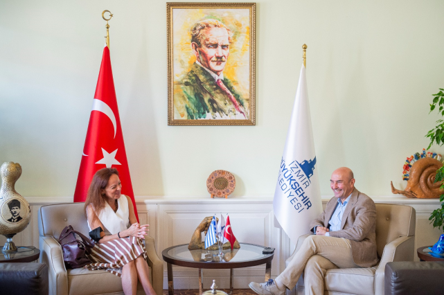 Görev süresi tamamlanan Yunanistan İzmir Başkonsolosu Despoina Balkiza, İzmir Büyükşehir Belediye Başkanı Tunç Soyer’e veda ziyaretinde bulundu. Despoina Balkiza’yı makamında ağırlayan Başkan Soyer, Başkonsolosun kente güzel hizmetlerde bulunduğunu belirterek, “Sizinle çalışmak güzeldi. İzmir’de unutulmayacak izler bıraktınız. Kentteki çalışmalarınız çok kıymetli” dedi.
